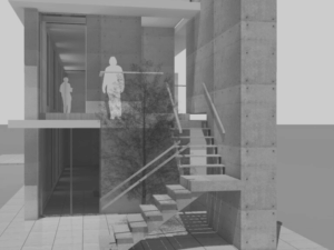 一方はバス通りに面し、高い視認性を確保。もう一方は、緑豊かで落ち着きのある遊歩道に面し、ゆったりとした空気が流れています。